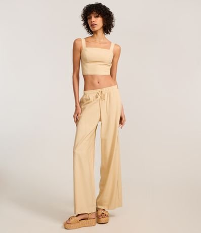 Blusa cropped com alça larga, confeccionada em viscolinho produzido em boas práticas ambientais, possui lastex nas costas e alça larga com elástico.