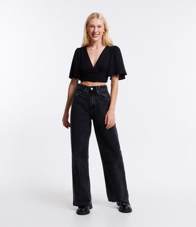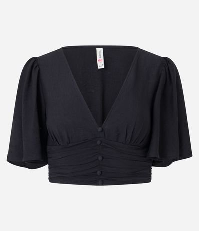 Blusa Cropped em Viscose com Manga Godê e Botões