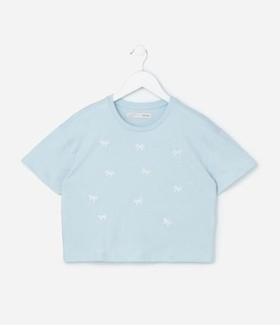 Blusa Cropped Infantil com Bordado Laços - Tam 5 a 14 Anos