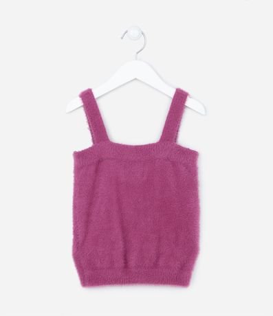 Ref: Blusa cropped, com alças, detalhe caneladinho e confeccionada em tricô peludinho.
