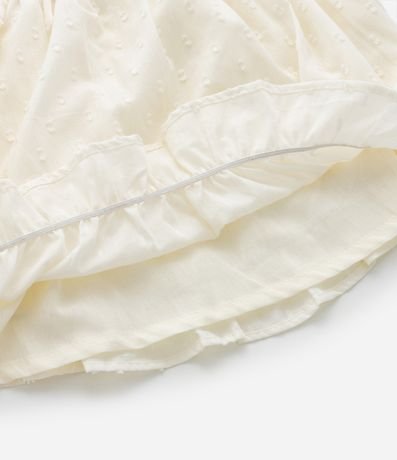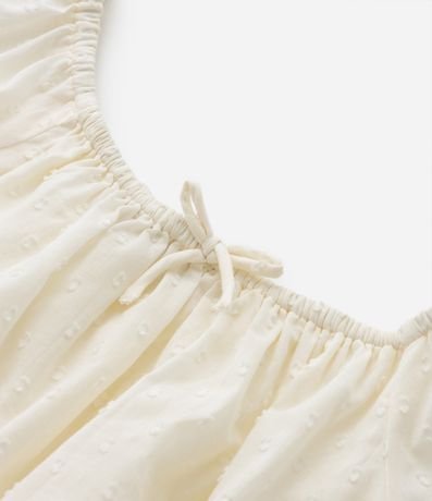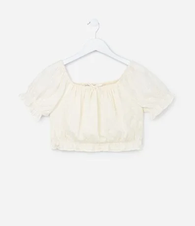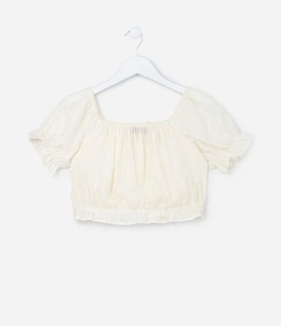 Ref: Blusa infantil confeccionada em tricoline, de modelo cropped, com mangas curtas e babadinho, texturizada e com lacinho.