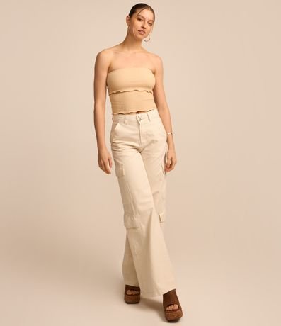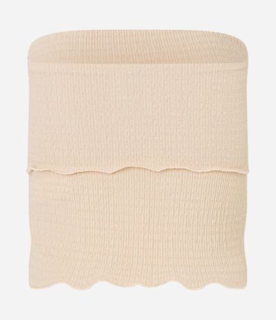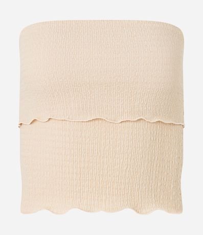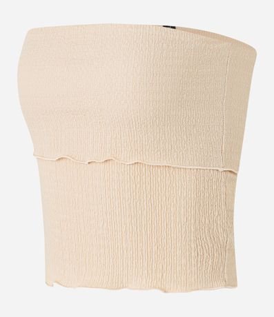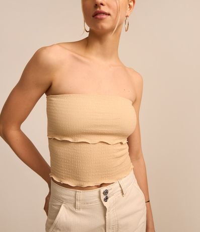 Cropped feminino sem alças, com textura canelada e dobra larga no busto e nas costas.