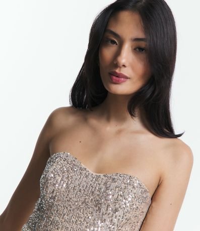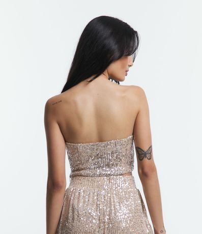 Blusa curtinha em paetês e sem alças. As lantejoulas na malha são o glamour desta blusinha pra lá de fashion!