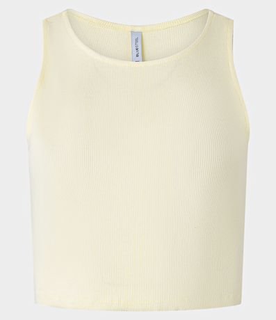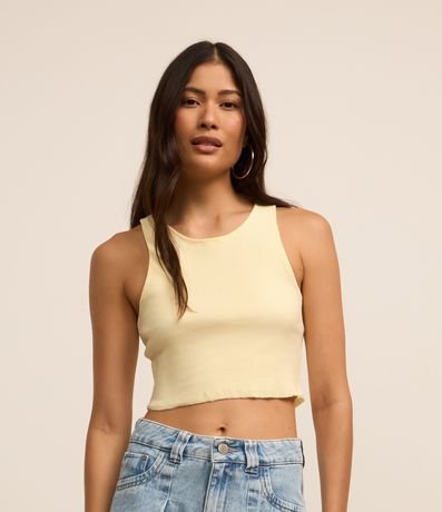Blusa cropped algodão canelado, sem mangas e sem estampa.