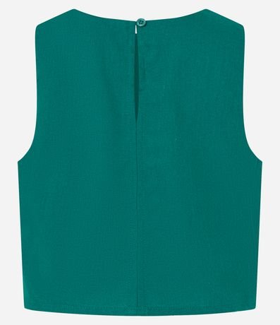 Ref: Blusa cropped, sem manga, confeccionada em linho e com abertura gota nas costas e fechamento por botãozinho.