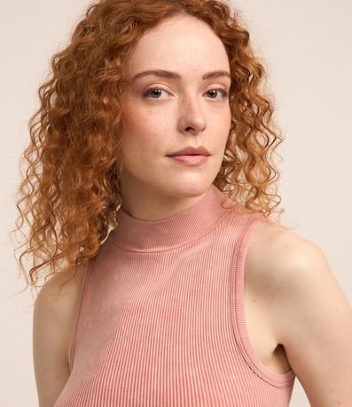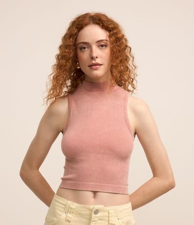 Blusa cropped com golinha alta, sem manga e confeccionada em poliamida, seamless.