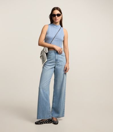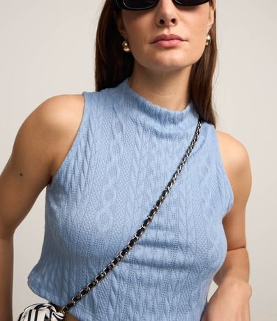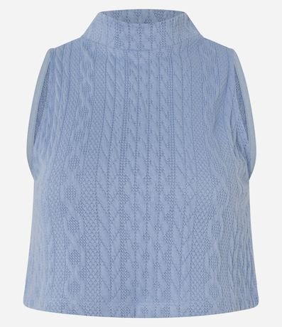 Blusa Cropped Sem Manga Texturizada com Golinha Alta