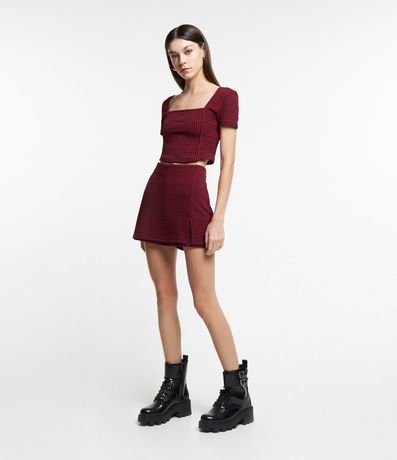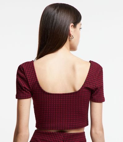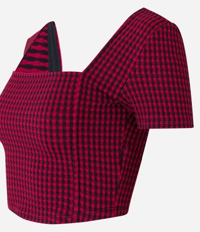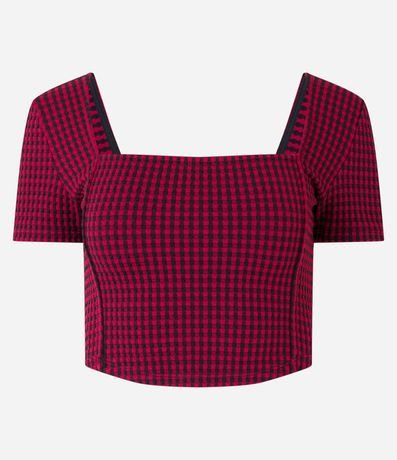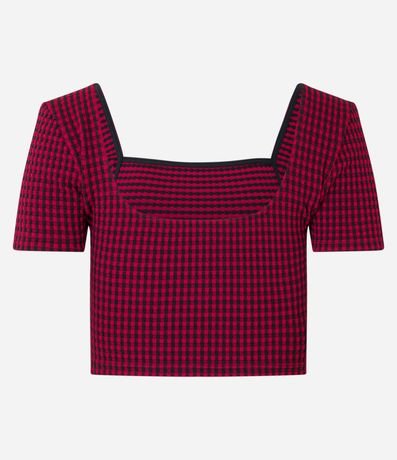 Ref: Blusa cropped com mangas curtas e estampa xadrez vichy.