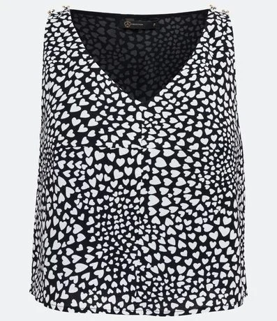 Ref: Blusa curta em poliéster com decote V, sem mangas e estampa de corações.