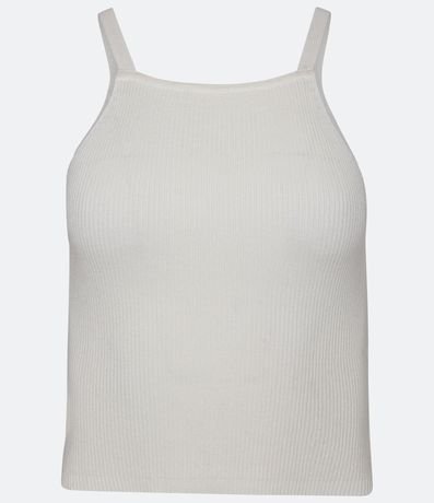 Ref: Blusa curta de alcinhas em tricô canelado. Possui textura listrada.
