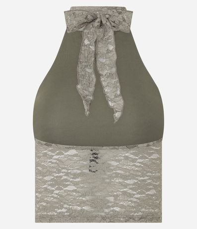 Blusa Curta em Laise com Decote Halter