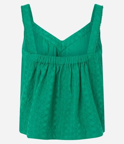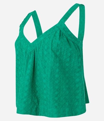 Ref: Blusa feminina de modelo curto, com decote V e alças médias. Confeccionada em laise, possui textura, elástico nas costas e detalhe de miçangas nas algas.