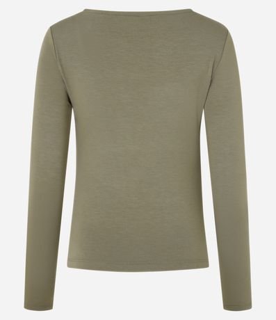 Blusa feminina de modelo curto, confeccionada em moletinho, com decote quadrado e mangas longas. Sem estampa, possui detalhe de franzidos laterais.