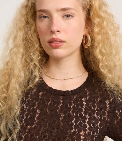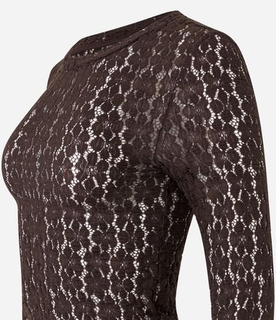 Blusa slim, curta com manga longa, confeccionada em poliamida com textura floral.