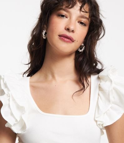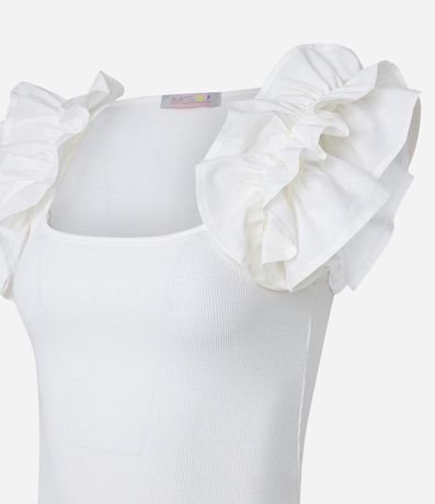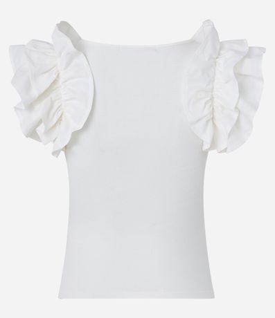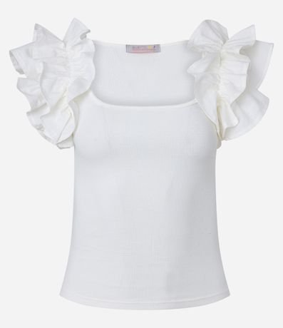 Ref: Blusa sem manga, babadinhos na cava, decote quadrado e confeccionada em ribana.
