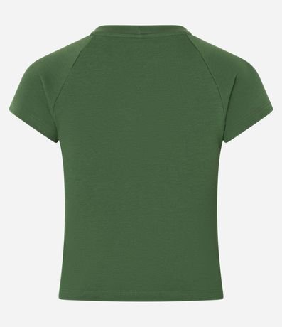Blusa feminina de modelo super curta, com gola redonda, mangas curtas e diferencial de cava raglan. Peça confeccionada em algodão mais sustentável.