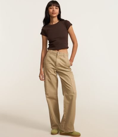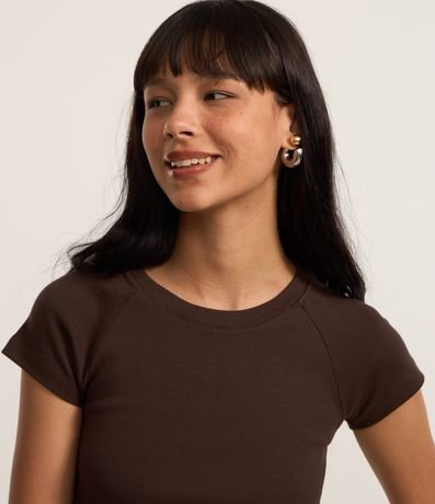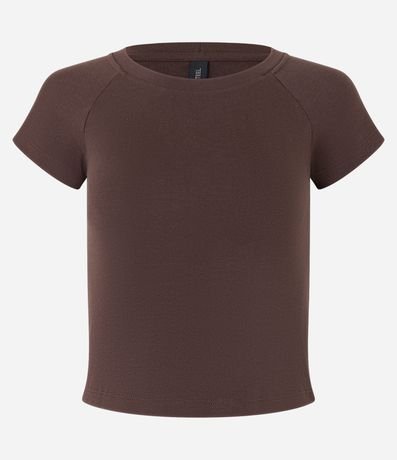 Ref: Blusa feminina de modelo super curta, com gola redonda, mangas curtas e diferencial de cava raglan. Peça confeccionada em algodão mais sustentável.