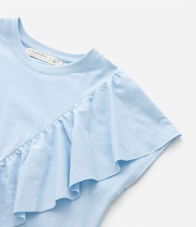 Ref: Blusa infantil curta confeccionada em algodão, com gola redonda, sem mangas e com babadinho transversal na frente da peça.