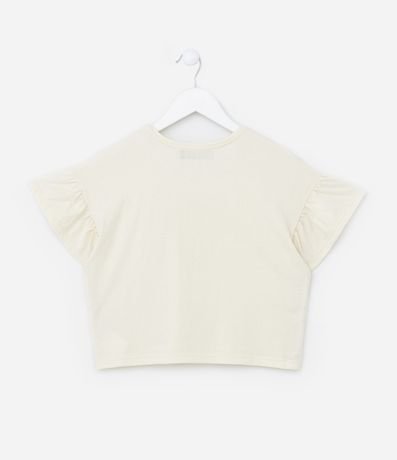 Ref: Blusinha infantil curta, com gola redonda, mangas curtas e com babadinhos. Possui bordado de limãozinho.