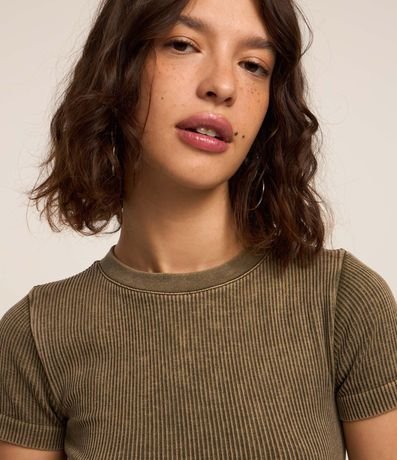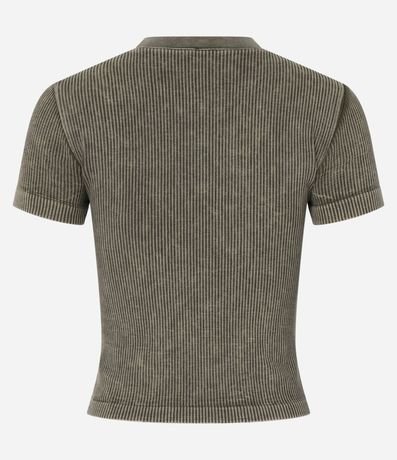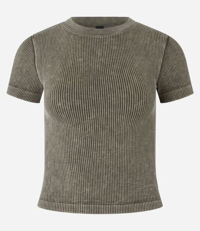 Ref: Blusa feminina confeccionada em poliamida e elastano, com gola redonda, manga curta, sem costura com efeito lavado.