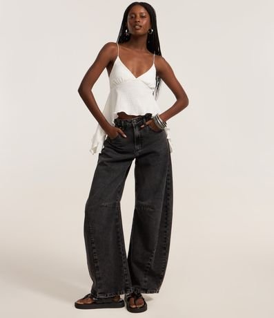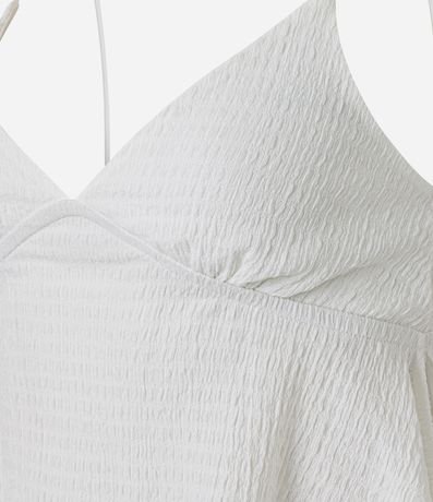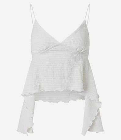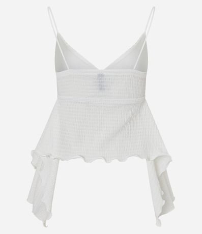Ref: Blusinha de alças finas, confeccionada poliéster com elastano, texturizada e com decote V. A peça conta com barra diferenciada, possuindo pontas nas laterais,