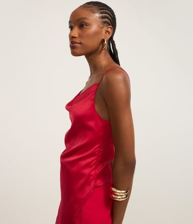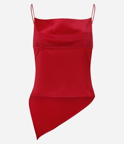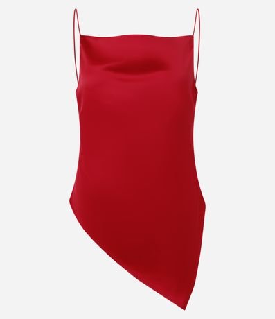 Blusa alongada com alcinhas finas, decote degagê com textura acetinada e com ponta na barra.