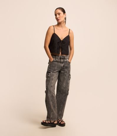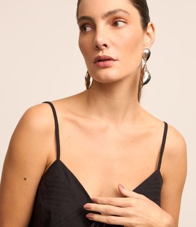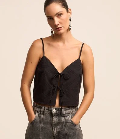 Ref: Blusa de alcinhas finas reguláveis confeccionado em algodão com textura jacquard e amarração frontal.
