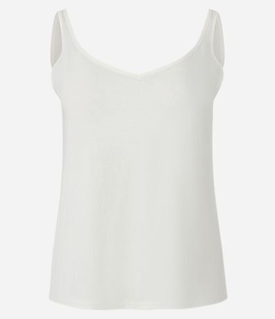 Ref: Blusa sem mangas, confeccionada em algodão peruano, com decote V no busto e nas costas, além de alcinhas finas. Este produto possui algodão certificado BCI em sua composição, sendo ambientalmente mais responsável.