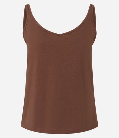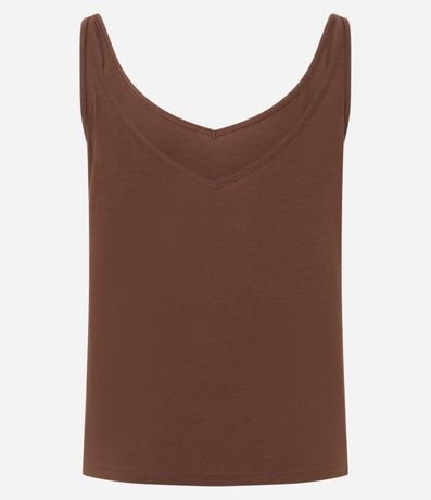 Blusa sem mangas, confeccionada em algodão peruano, com decote V no busto e nas costas, além de alcinhas finas. Este produto possui algodão certificado BCI em sua composição, sendo ambientalmente mais responsável.