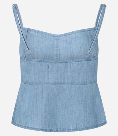 Ref: Blusa sem mangas, confeccionado em jeans, com decote reto, recortes no busto e alças finas. Este produto possui algodão certificado BCI em sua composição, além de ter sido produzido através de processos mais sustentáveis, sendo ambientalmente mais responsável.