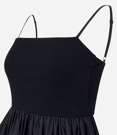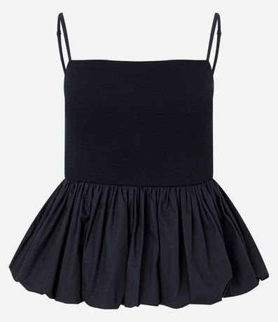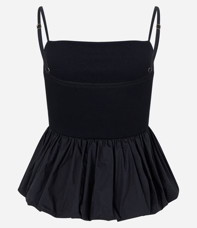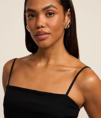 Ref: Blusa sem mangas confeccionada em ribana com alcinhas finas reguláveis, textura canelada e barra com efeito balonê.