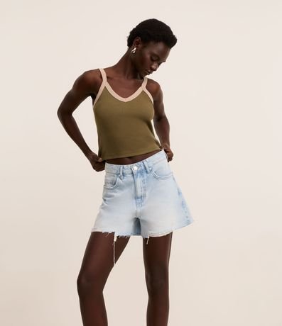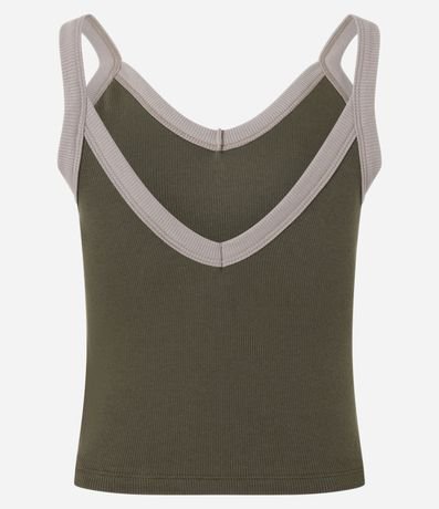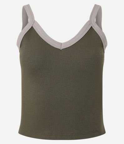 Ref: Blusa confeccionada em ribana com algodão bci mais sustentável, alças contrastantes e sem estampa.