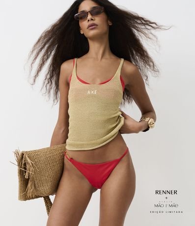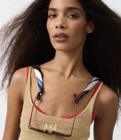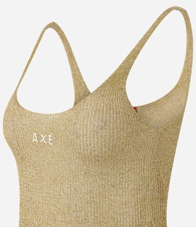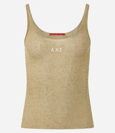 Ref: Blusa sem mangas, confeccionada em tricô, com decote U, alças finas. e lettering "Axé". Peça com efeito metalizado. Este produto possui viscose certificada em sua composição, sendo ambientalmente mais responsável.