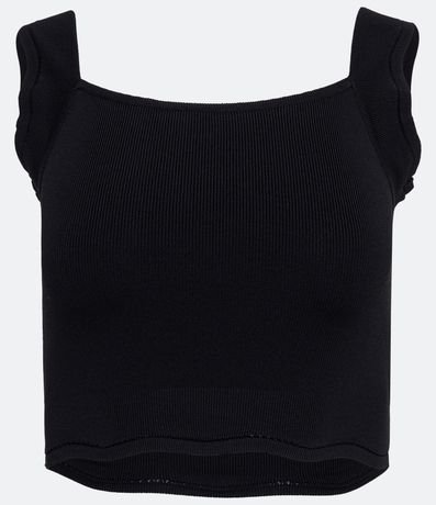 Ref: Blusa de alça em tricô com decote redondo, ondulação nas alças e na barra e sem estampa.