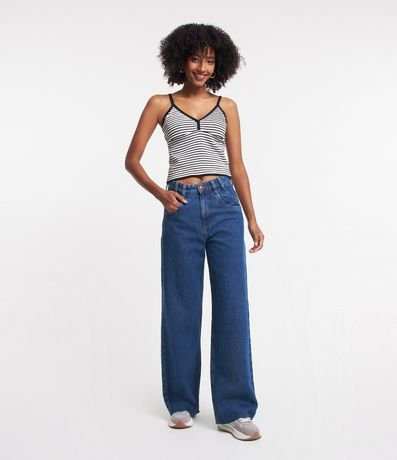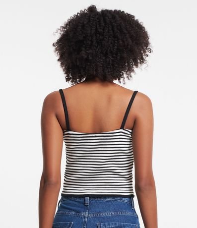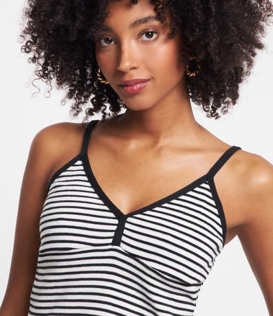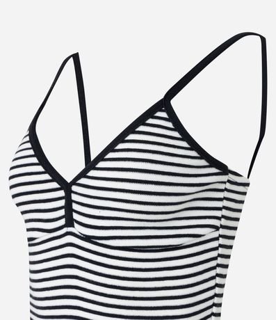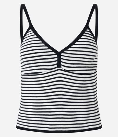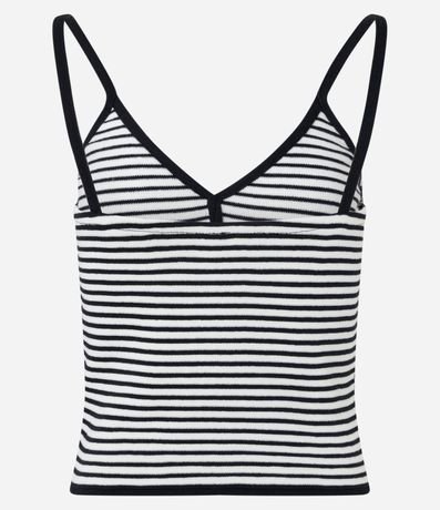 Blusa de alcinha, decote v transpassado, confeccionada em tricô leve e com listras.