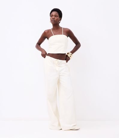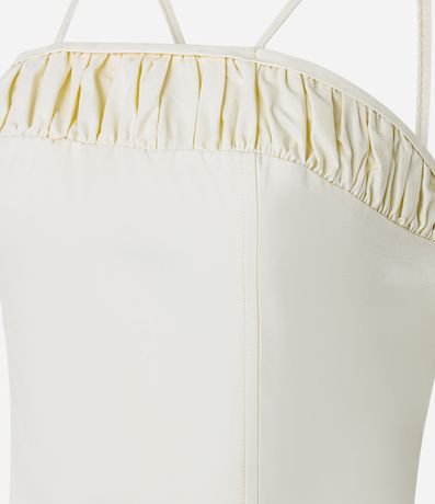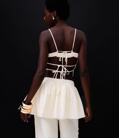 Ref: Blusa de alcinhas finas, confeccionada em tricoline, com decote reto com franzidos, com elástico e e amarrações nas costas. Este produto possui algodão certificado em sua composição, sendo ambientalmente mais responsável.