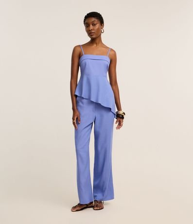Blusa de Alça em Viscolinho com Barra Assimétrica