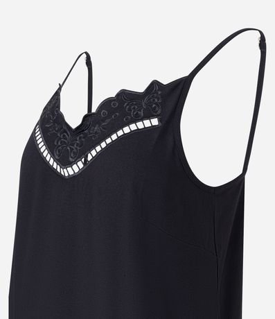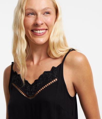 Blusa de Alça em Viscose com Bordado Floral no Decote