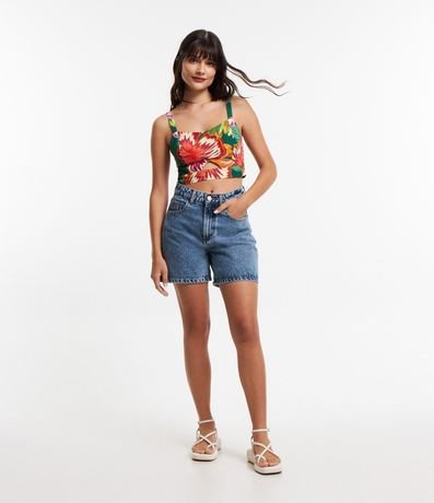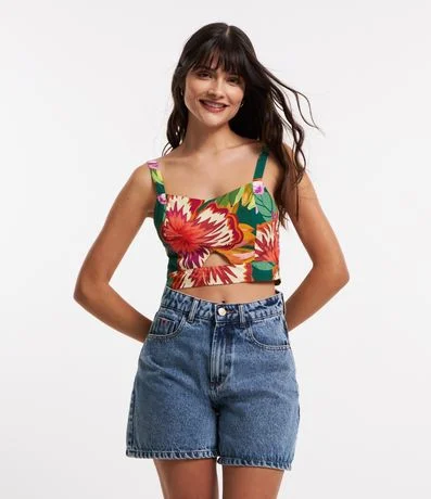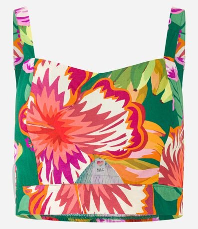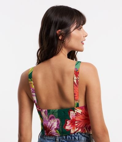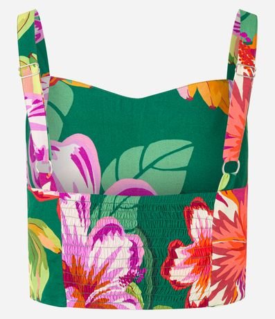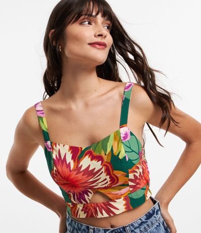 Ref: Blusa de alcinhas, com recorte vazado no busto, estampa floral e lastex nas costas.