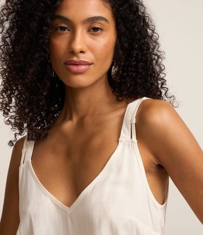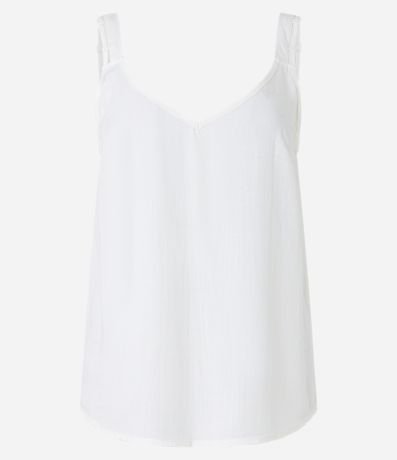 Blusa sem mangas confeccionada em viscose com alças largas e decote V. Possui tecido texturizado.