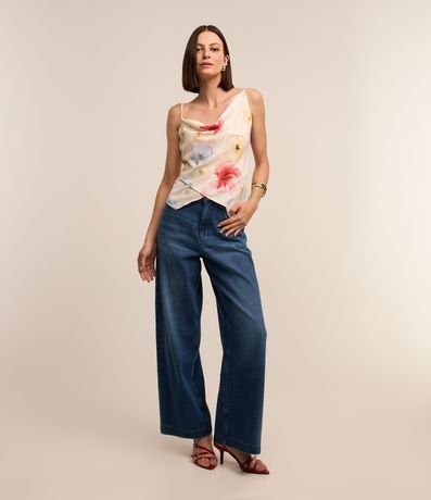Ref: Blusa de alcinhas finas, decote quadrado e com estampa floral e barra assimétrica.