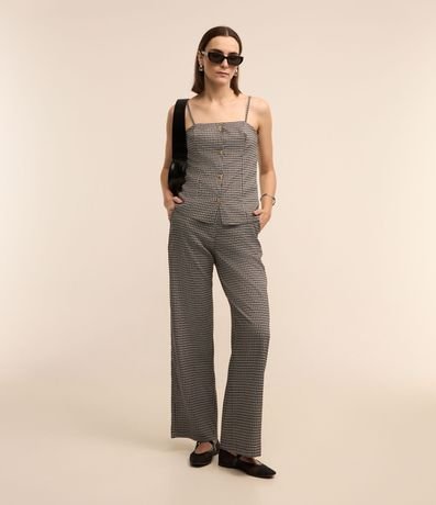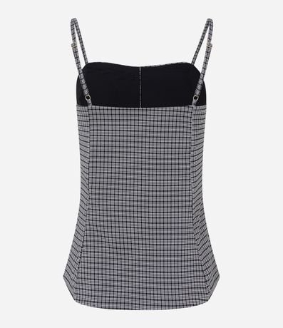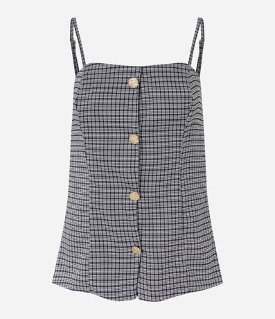 Blusa feminina, confeccionada em poliéster e viscose, com alcinha fina regulável, abotoamento frontal e estampa xadrez.