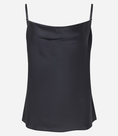 Ref: Blusa de alcinha feminina, confeccionada em tecido acetinado, com alça regulável e decote degagê.
