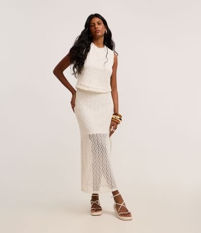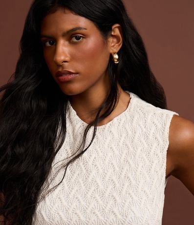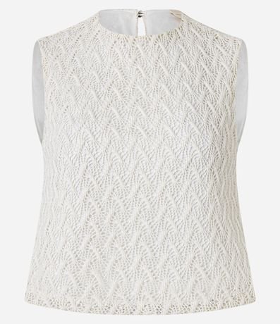 Ref: Blusa sem mangas com gola redonda e alças largas. Peça de efeito crochê.
