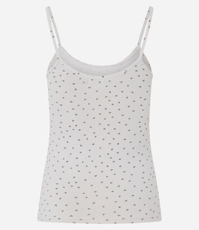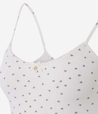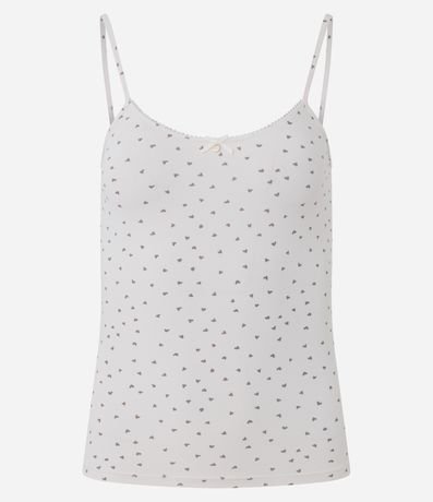 Ref: Blusa de pijama feminina em microfibra, sem mangas, com alças finas e estampa de corações. Possui caimento confortável, toque suave e detalhe delicado de laço com plaquinha frontal, ideal para momentos de descanso com leveza e praticidade.