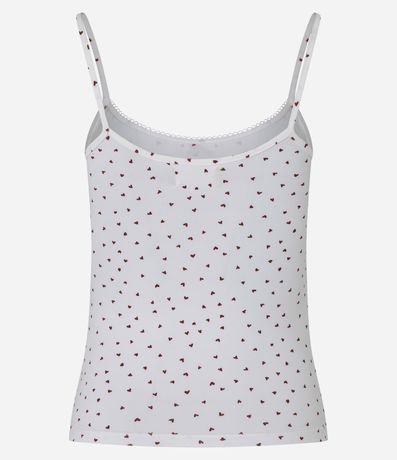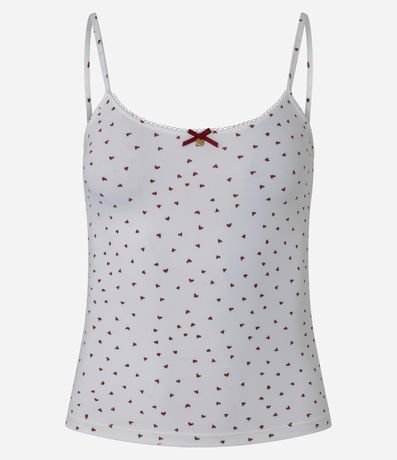 Ref: Peça avulsa de pijama confeccionada em microfibra. A blusa tem alças finas fixas, decote com picueta e estampa de corações pequenininhos.