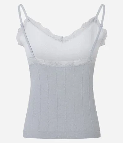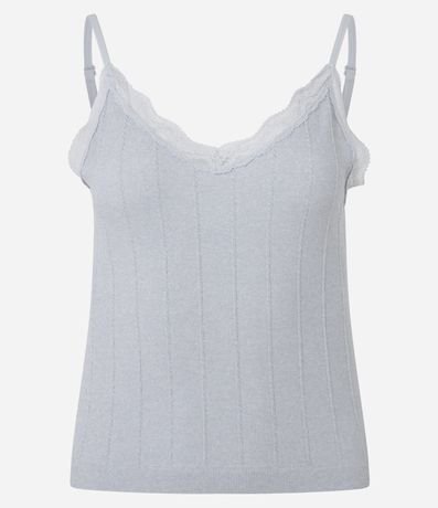 Blusa de Pijama Alcinha Seamless com Renda e Textura Trançada