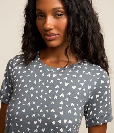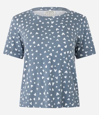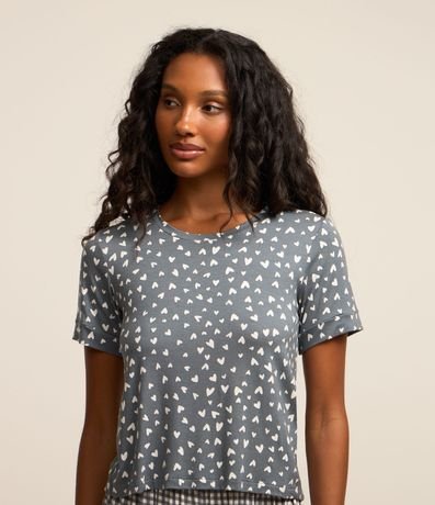 Ref: Blusa de pijama com mangas curtas e estampa de corações.
