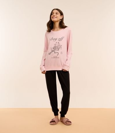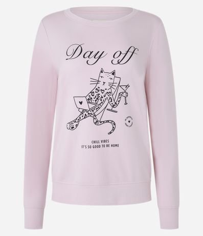 Ref: Peça avulsa de pijama confeccionada com algodão. A blusa tem mangas longas e estampa divertida de oncinha curtindo uma folga em casa.