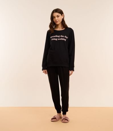 Blusa de Pijama em Algodão com Estampa Doing Nothing